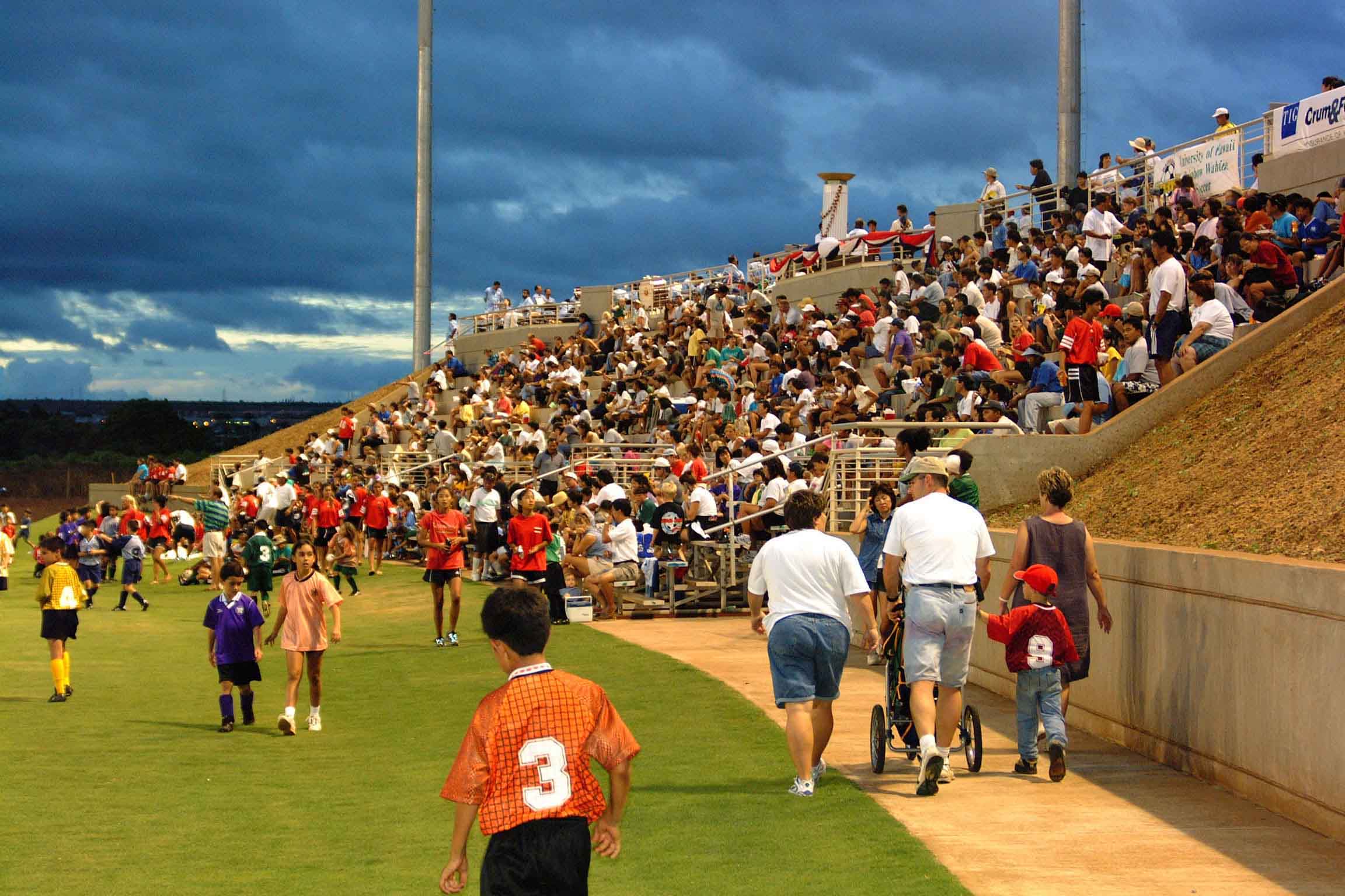 Opened on September 2, 2000 with 19 fields in use by youth and adult players alike. The 4,000-seat stadium is now the home field for the University Of Hawaii Women's Soccer Team and will host the Hawaii High School and the Men's Soccer Island Association's of Hawaii Championship Playoffs, as well as many other youth, amateur, and professional events.